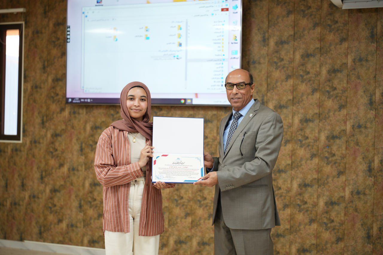 اعتزازاً بما قامت به من جهد علمي مميز ،أظهر تمكَّنها من أساسيات البحث العلمي الرصين ، واختيارها الموضوع ذات بُعد علمي وتوعوي ،قام السيد مدير ...