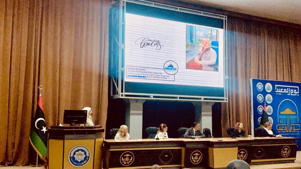 د. أينور الكرغلي، منسق التعليم الإلكتروني و عضو هيئة التدريس ببرنامج العلوم الطبية الأساسية، في المؤتمر العالمي لواقع وآفاق تدريس ونشر اللغات الحية، الذي أُقيم خلال الفترة من 18 إلى 23 أكتوبر 2025م بجامعة بنغازي.